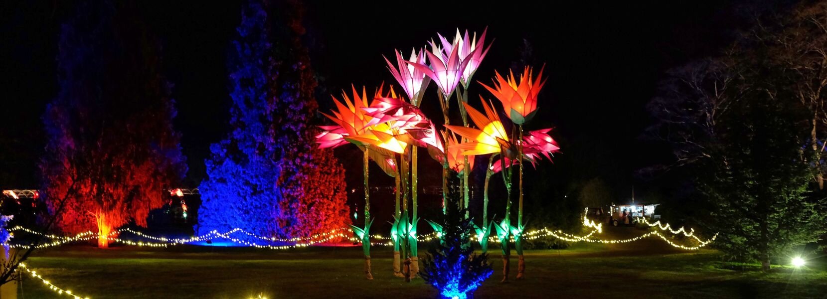 Laser lights, fireworks trees and wicker animals are all included in the illuminated arboretum.